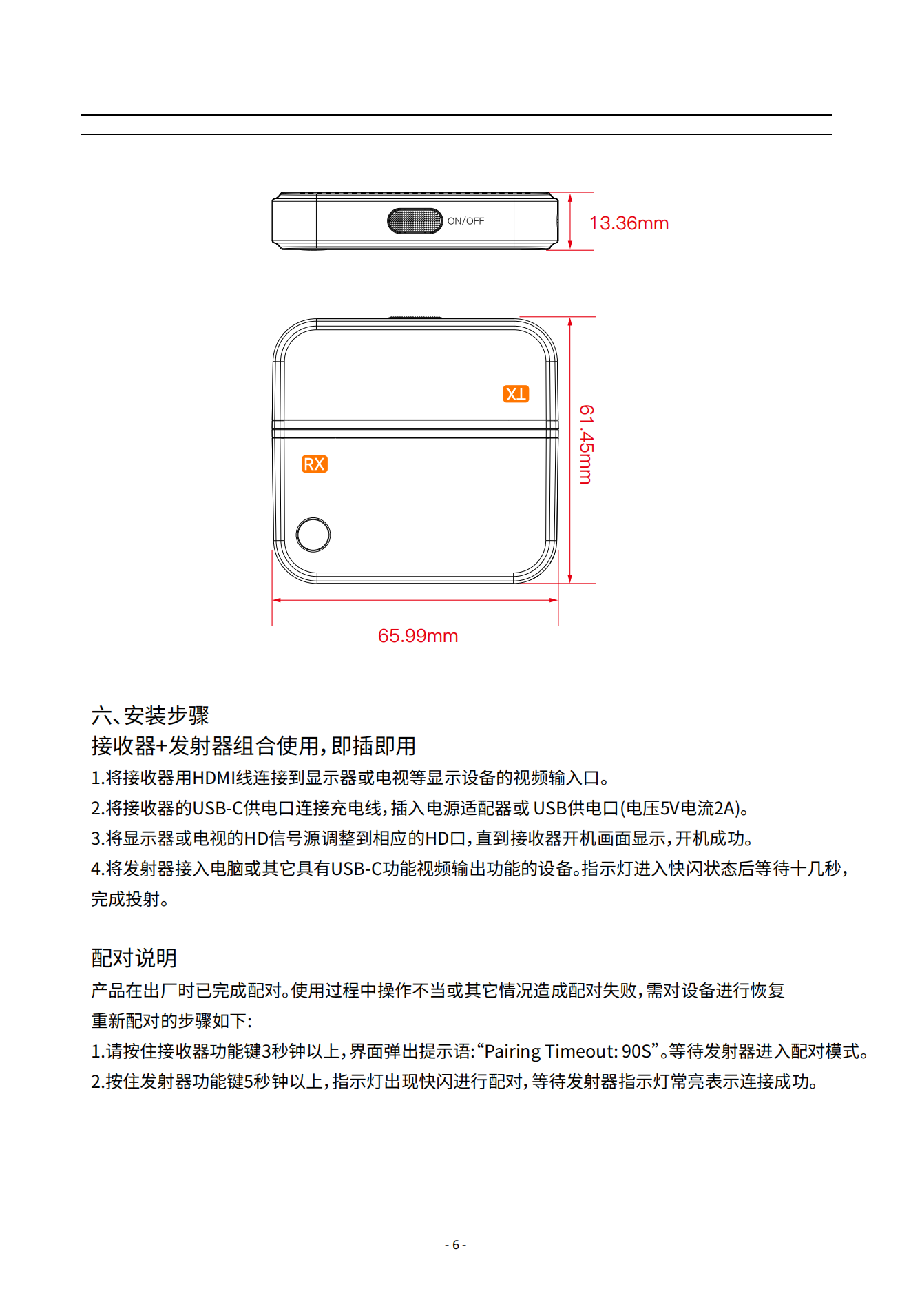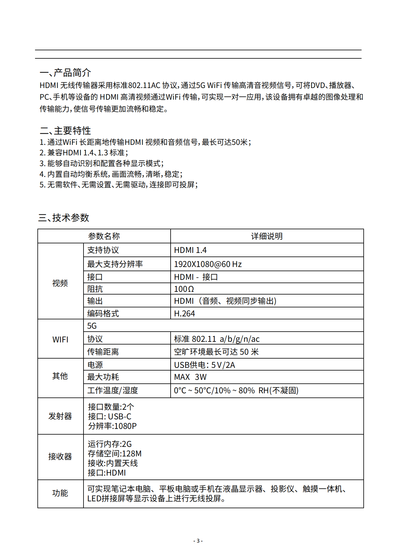 投屏器点对点高清无线投屏器1080P60Hz白色SCTP-557/CHD09无线传输规格书.pdf...