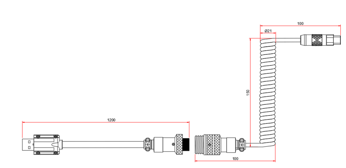 SCUA-575 | 1.5米 | 黑色 | RGB炫彩 TYPE 涤纶编网+渔丝网 C接口 GX16航插 材质:PU OD6.0MM 长度:直线1.2米, 螺旋自然状态0.3米 拉直1.45米 支持最大60W 带数据传输 铜丝:124根国际铜 4芯 | ||
