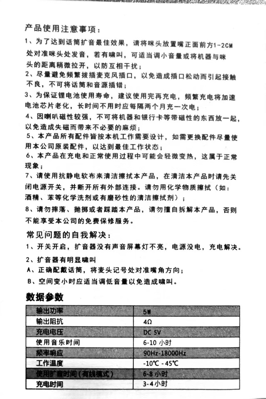 实测结果:1.蓝牙名称:k1;2.蓝牙播放是能否同时扩音:可以阔以;3.充满电时间:充电头充电4h;4.续航时间:7小时30分钟